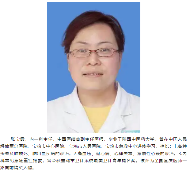 内一科是我院心脑血管病专科,宝鸡市青年文明号,科室现有医护人员14名,其中高级职称2名,中级职称5名。科室共有病床40张,配备有多参数心电监护仪、遥测心电监护仪、除颤仪、中频脉冲治疗仪、空气压力波治疗仪、红外线治疗仪等康复设备。近年来科室引进体外反搏治疗仪、6分钟步行试验、踏车训练,为解决心脑血管病康复难题带来了新的曙光。 主治: 1、各种头晕,短暂性脑缺血发作,脑卒中(脑梗死、脑出血急性发作及康复治疗),面神经麻痹,周围神经麻痹等神经内科疾病。 2、高血压、冠心病、心律失常、急慢性心力衰竭等心血管疾病。 3、内科系统常见疾病。 联系电话:0917-6269539(医办) 13152240015(张主任)