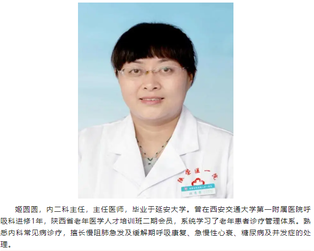 内二科简介 内二科是我院迁址后新建的老年病专科,有经过专业培训的老年医学诊疗团队。现有医护人员12名,正高职称1名,副高职称3名,中级职称5名。科室配有病床40张,医疗设备齐全,现有科曼体外除颤监护仪、飞利浦多参数心电监护仪、科曼遥测心电监护仪、迈瑞SV300呼吸机、注射泵等急救监护设施,微泰贴服式胰岛素泵、动态血糖监测等精准检测控糖设备,为广大糖友健康保驾护航。 主治: 1. 呼吸系统常见病及危重症抢救、肺部慢病的呼吸康复训练;糖尿病及并发症的诊疗; 2.中医药治疗常见内科疾病,中医适宜技术应用; 3.肿瘤晚期患者维持治疗; 4.高血压急症、心衰、心律失常、缺血性心肌病诊疗及脑卒中患者康复。 联系电话:0917-6269540(医办) 15389338158(姬主任)