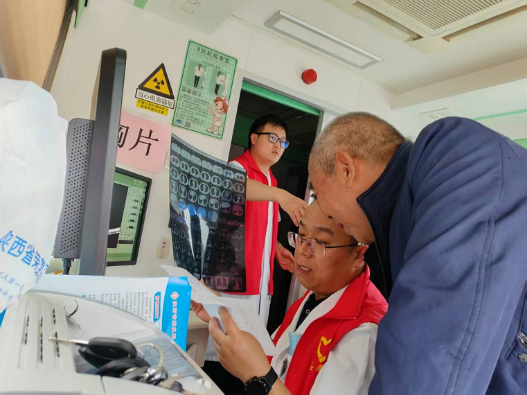 专家赋能,优质资源惠民生 活动特别邀请陕西省康复医学会疗养康复专委会蒋极洲医生,为前来体检的老兵进行健康评估、关节炎康复训练、日常生活康复指导等。唐都医院影像医学专家闫卫强现场阅片答疑解惑。得知老兵李栋爱人长年卧床,唐都医院超声医学专家金京兰主动为其做彩超并讲解注意事项,李栋感动道:“关心我还想着家属,这情谊重千斤!”