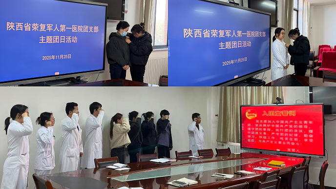 活动开始,团支部书记带领全体团员青年系统学习了《中国共产党第二十届中央委员会第四次全体会议公报》,结合医院发展实际梳理了学习要点,强调要深刻把握全会精神对优抚医疗工作的指导意义。随后,团支部委员分别领学了《中共中央关于制定国民经济和社会发展第十五个五年规划的建议》学习辅导百问中部分篇章。 此外,为欢迎新入职的团员,团支部举行了入团仪式,为新入职的团员郑重佩戴团徽,象征着青春责任与使命的传递。全体团员重温入团誓词,庄严宣誓,誓言铿锵有力,彰显出青年医护人员扎根岗位,以专业守护退役军人及群众健康的坚定决心。