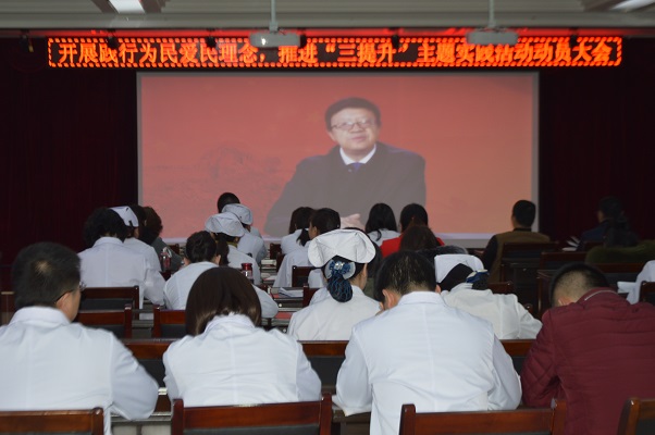 2月13日,陕西省荣复军人第一医院召开了“践行为民爱民理念,推进‘三提升’”主题实践活动动员大会。医院全体党员干部职工参加了会议。 党委副书记刘振民对医院开展“三提升”主题实践活动和中层干部开展集中学习进行了安排部署。 党委书记、院长胥学会作了动员讲话。他强调,一是要充分认识开展“三提升”主题实践活动的重要性,切实增强全员参与的自觉性和主动性。二是要全面理解,准确把握“三提升”主题实践活动的指导思想、基本内涵和目标任务。三是要加强学习,思想认识务必入脑入心,着力提升党员干部整体素质。四是要加强组织领导,努力提高“三提升”主题实践活动工作成效。胥院长对开展集中学习活动提出了要求:一要端正学风;二要严守纪律;三要加强交流。他指出,今天的会议既是开展集中学习、开展“三提升”主题实践活动的动员会,也是2017年全院工作的启动会。要通过本次活动进一步巩固“两学一做”学习教育成果,凝聚共识,开阔视野,转变作风,不断提升干部素质,提升工作水平,树立良好的医院形象,为推动全年工作持续发展和实现追赶超越开好局、起好步。 会议最后观看了中央党校韩庆祥教授主讲的《用习近平系列重要讲话精神武装头脑,指导实践、推动工作》视频。