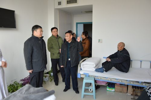 1月22日,省民政厅副厅长曾明、人事处处长周乃强、优抚处处长王彦海、社会事务处副处长彭立、人事处主任科员李晓虎5人来我院进行慰问及考核。曾副厅长一行慰问了在院荣军及离退休老干部,深入各科室进行了实地调研,并对我院2016年工作进行了考核。 曾厅长代表省厅党组为老荣军送上了慰问品,与老荣军亲切交谈,仔细询问老人们的身体状况和生活需求。老荣军们非常感动,表示对现在的生活很满足,非常感谢政府多年来一直记挂着他们。