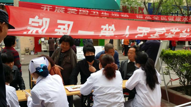 2018年4月4日上午,天气转阴降温,我院医务工作志愿者按照区爱卫办的统一安排,积极参加在陈仓区育才苑广场举办的,以“关注小环境 共享大健康”为主题的第30个“爱卫月”暨宝鸡市健康城市建设宣传活动。内一科张宝霞主任带领志愿者,现场开展环境与健康知识宣传、咨询、义诊服务等活动,医护人员用他们丰富的医学知识和临床经验,向群众讲解卫生与健康,生活习惯与健康等知识,针对不同人群,分别为他们开出健康处方及疾病处方。我们还通过悬挂宣传标语、发放宣传单、健康教育小册子等形式,向群众宣传好爱国卫生运动的重要意义,引导群众参与改造环境,摒弃陋习的活动,强化广大群众的卫生意识和环境意识,提高他们对健康生活方式的认识与了解。 此次活动,我们接受群众咨询200余人,义诊100多人,发放宣传单、健康教育小册子500余份。活动的开展,不但使我院的医疗服务面向社会,让当地老百姓受益,还拓展了我院健康教育工作的广度与深度,使全民健康生活理念深入人心,为宝鸡市的健康城市建设,为我院的精神文明建设添砖加瓦。 2018年4月4日