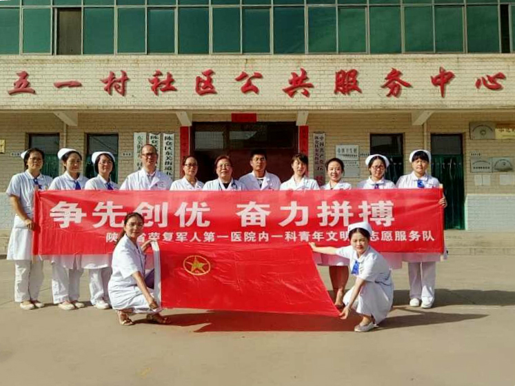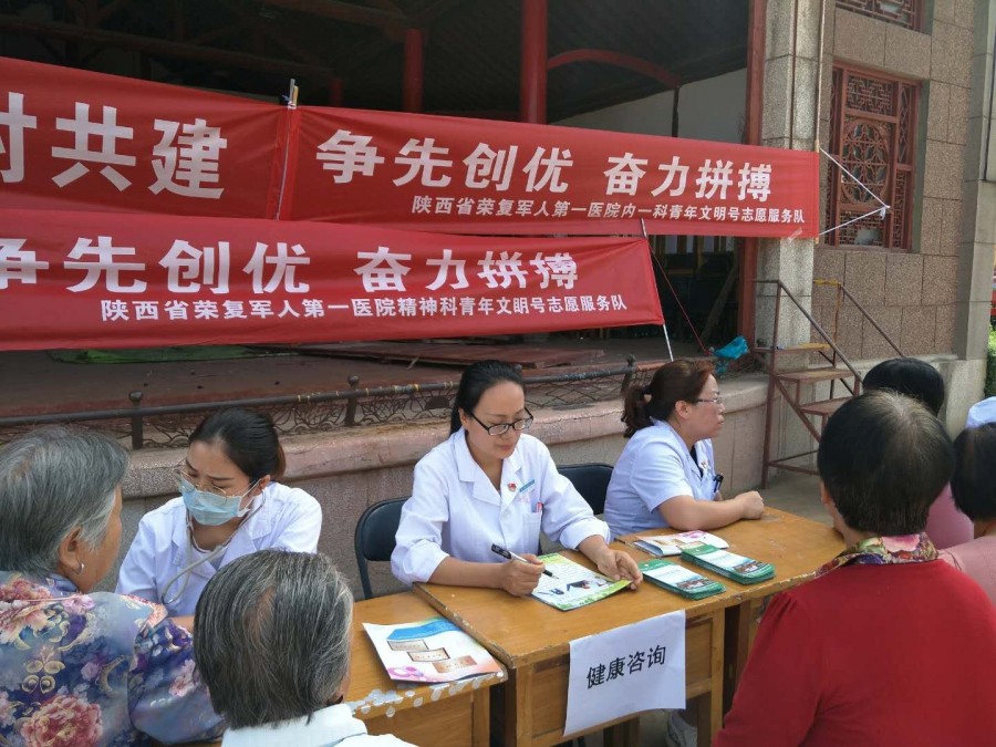 2018年9月6日下午,“情系大众守护生命”青年文明号、党支部结对共建送健康活动在陈仓区五一村社区公共卫生服务中心举行,陕西省荣复军人第一医院第六党支部、第八党支部、院团支部及内一科、精神科青年文明号集体共20余位医务工作者参加,累计接待咨询村民百余人,发放科普资料200余份。