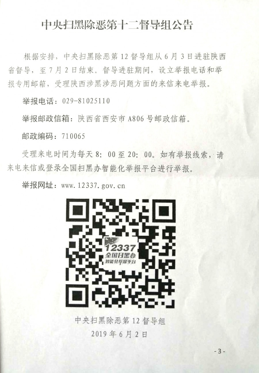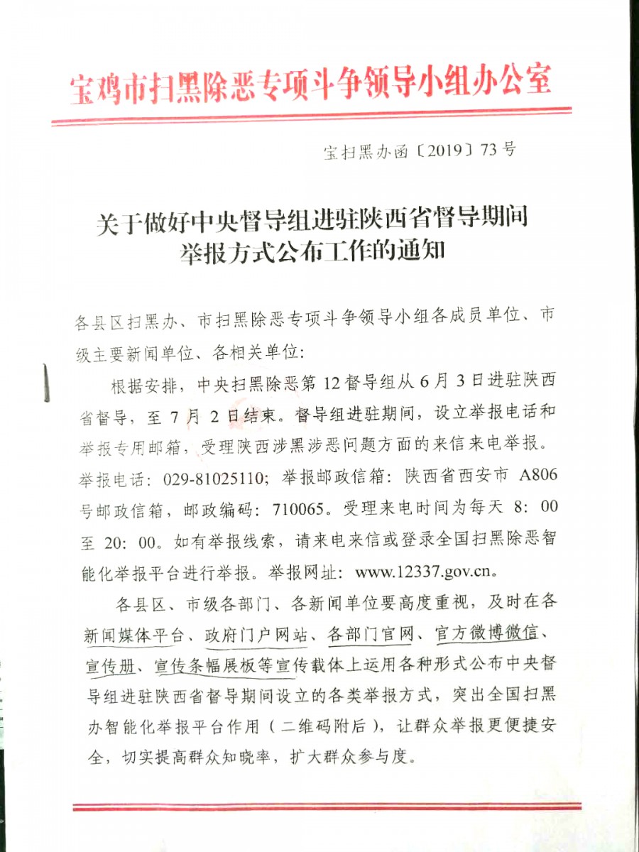 关于做好中央督导组进陕西省督导期间举报方式公布方式的通知