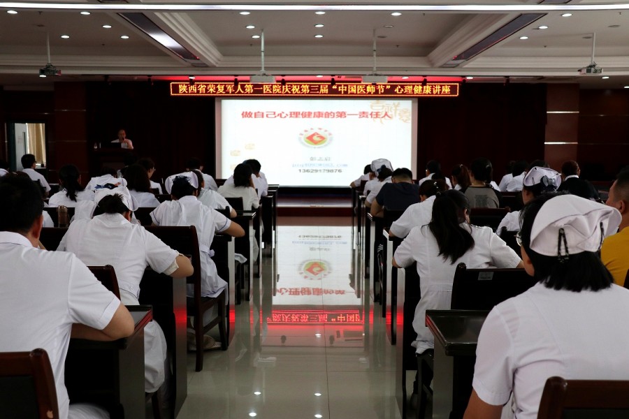 为庆祝第三届“中国医师节”,8月5日下午,我院特邀宝鸡文理学院统战部部长、宝鸡市心理卫生行业协会副会长彭志启教授在医院多功能厅举办《做自己心理健康的第一责任人》的专题讲座,医院150余名职工聆听了讲座。