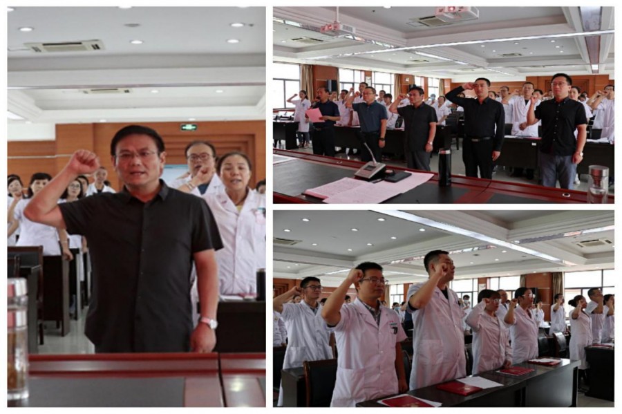 医院对2020年度评选出的3名医务管理先进个人、1名医技管理先进个人、8名优秀医师、3名优秀技师进行表彰奖励。受表彰的医务管理先进个人和优秀医师代表分别作了表态发言。院领导带领全体医务人员重温了《中国医师誓词》。