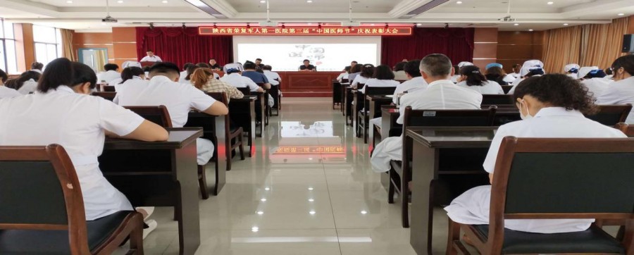 陕西省荣复军人第一医院召开第三届“中国医师节”庆祝表彰大会8月18日上午,我院召开第三届“中国医师节”庆祝表彰大会。