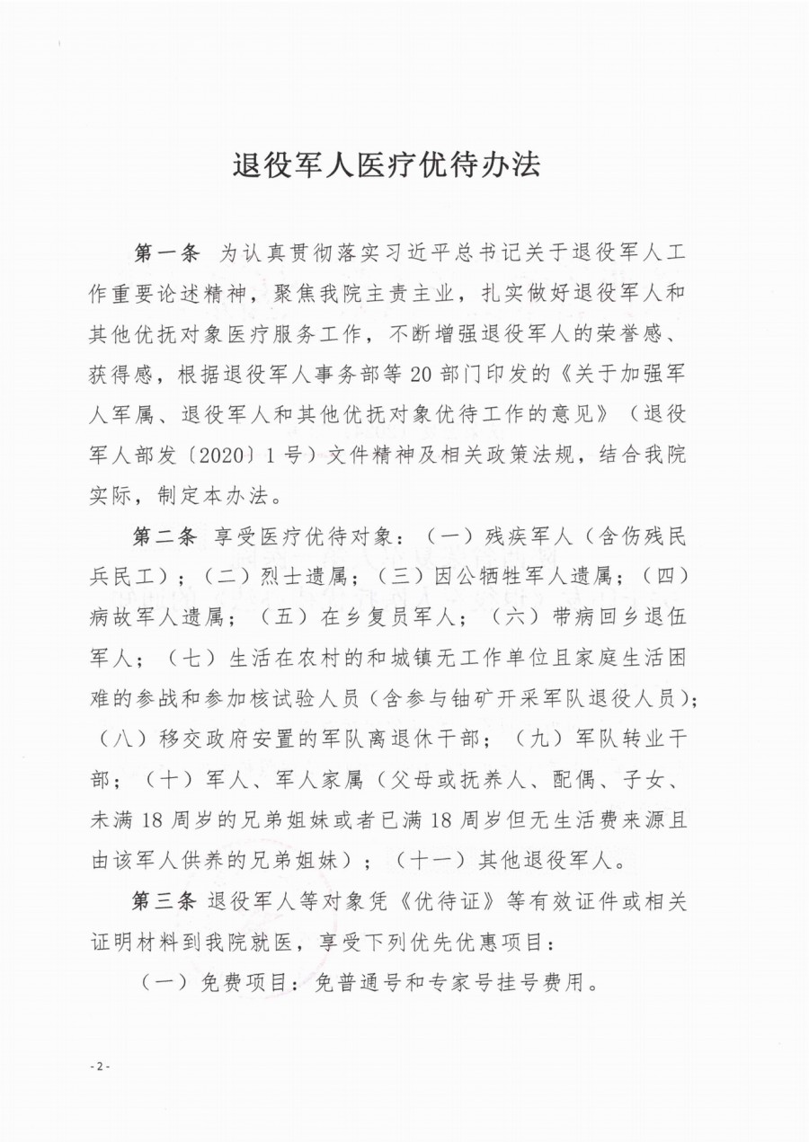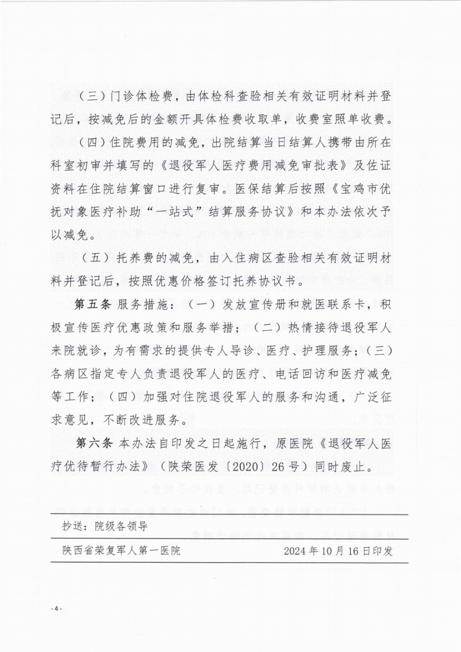 陕西省荣复军人第一医院关于印发《退役军人医疗优待办法》的通知